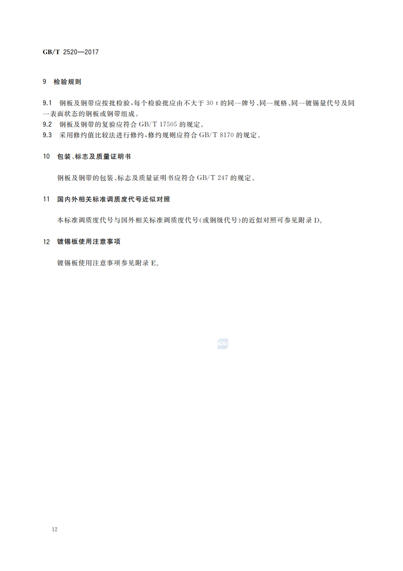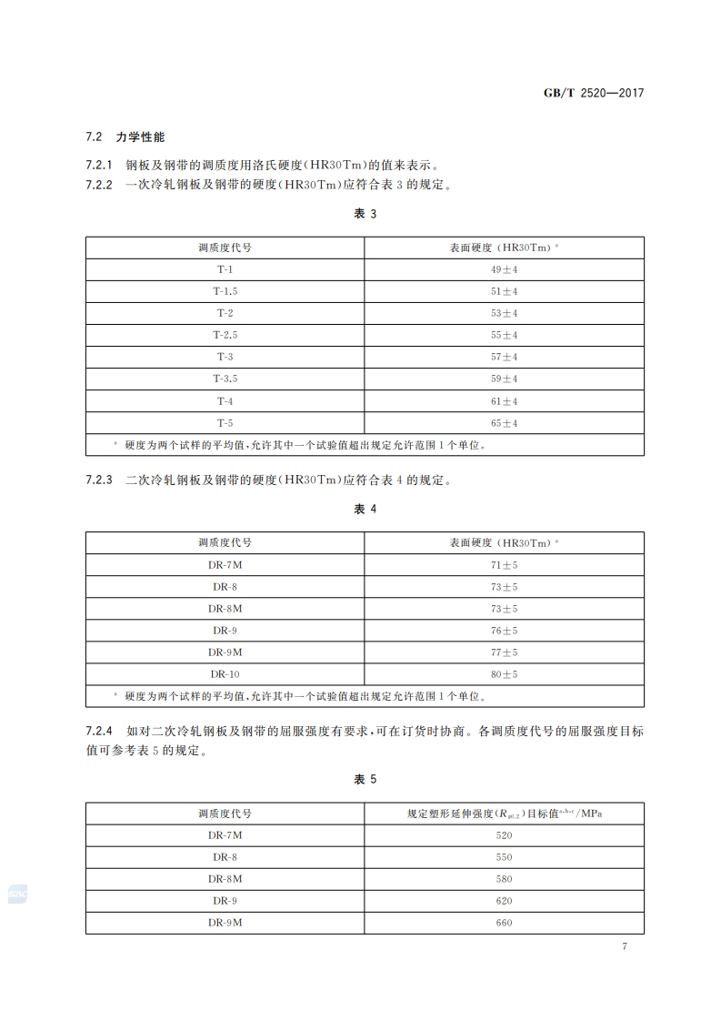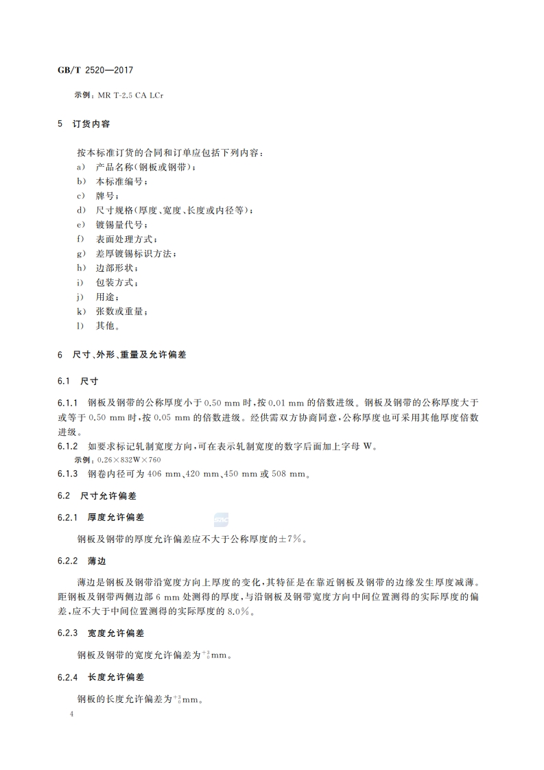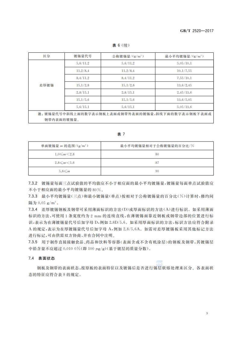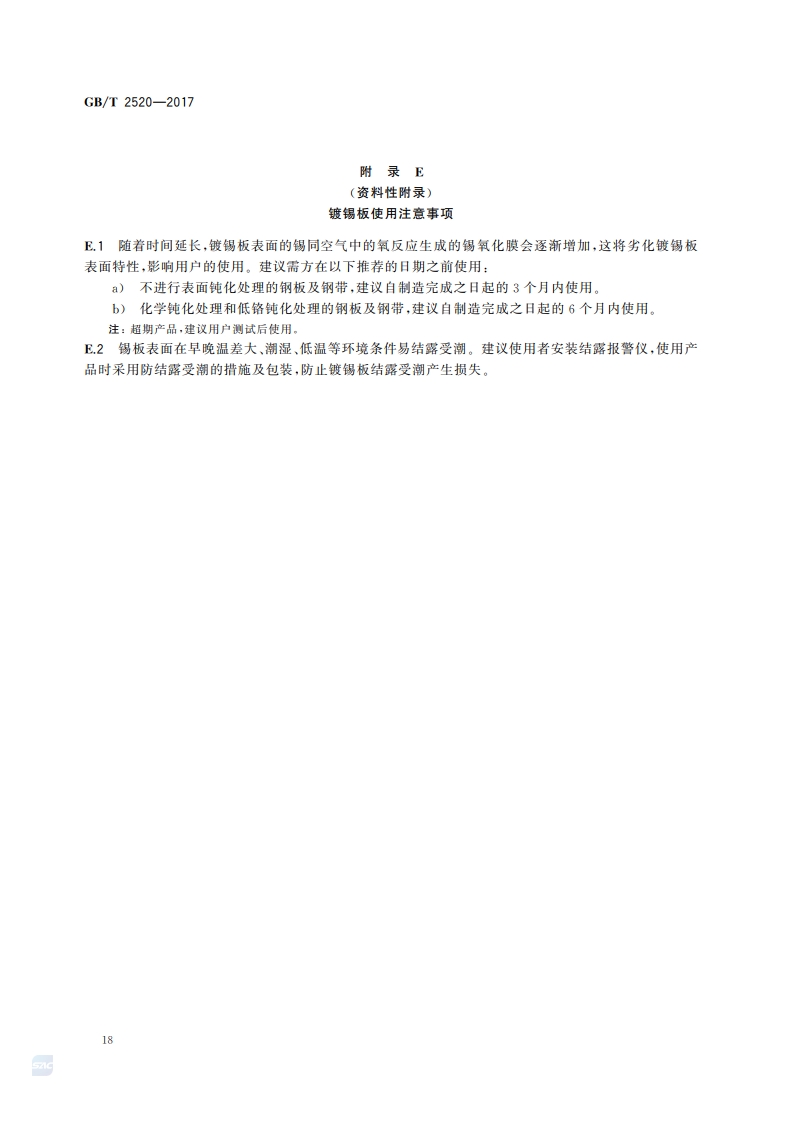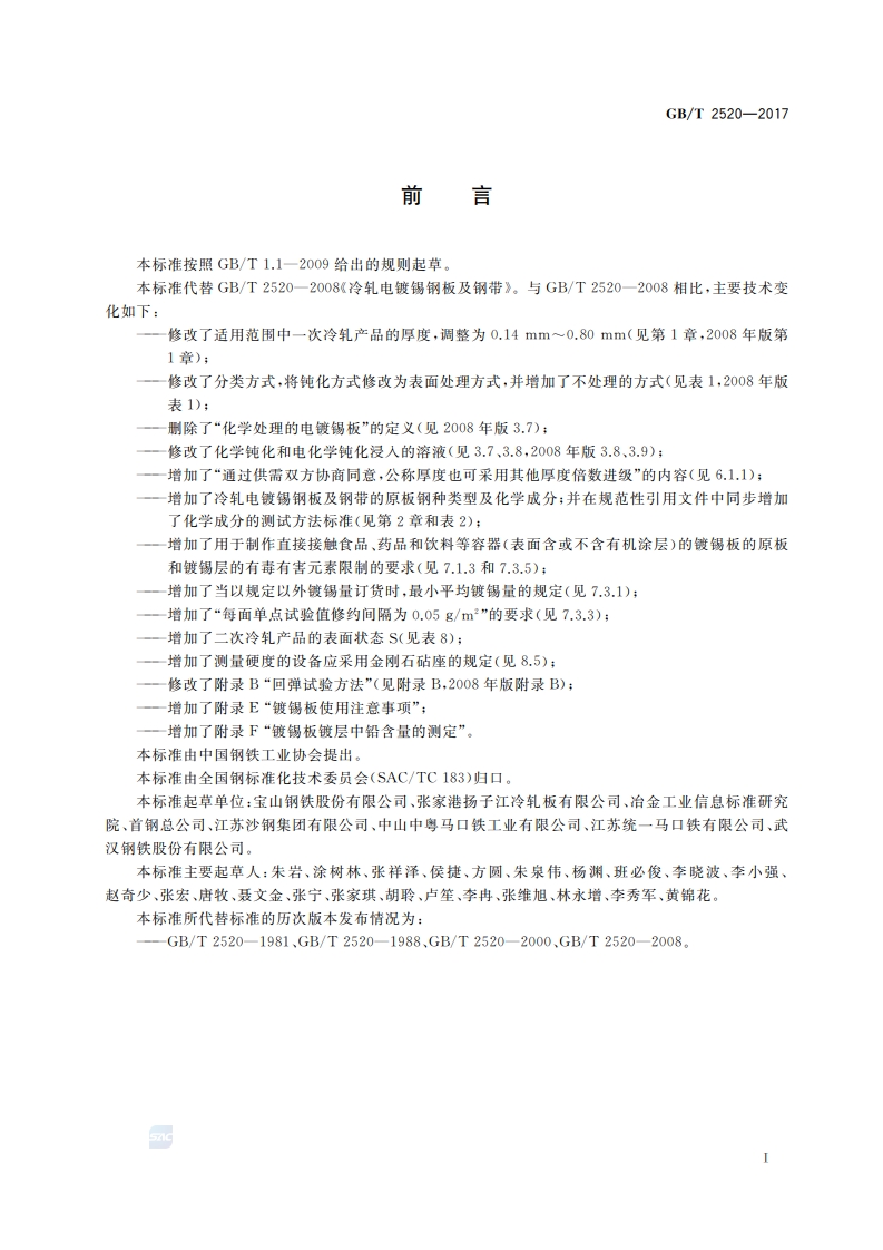 国标GB/T2520-2017,冷轧电镀锡钢板及钢带