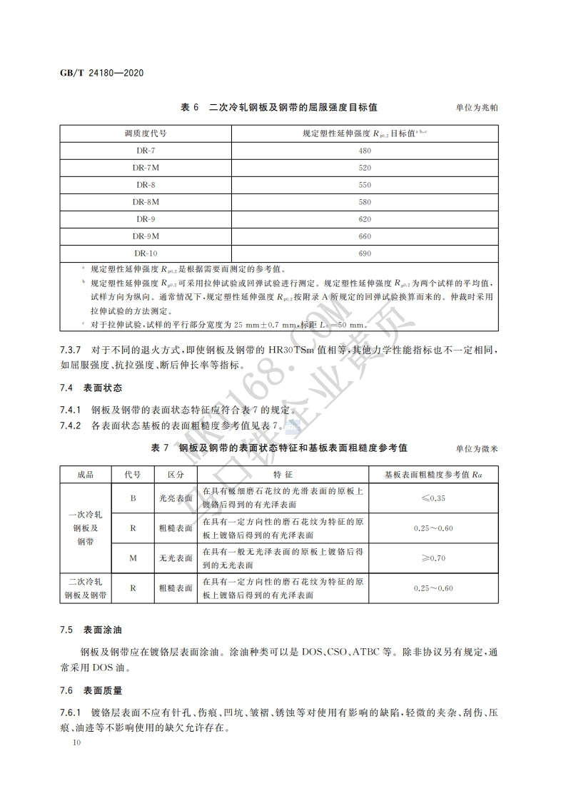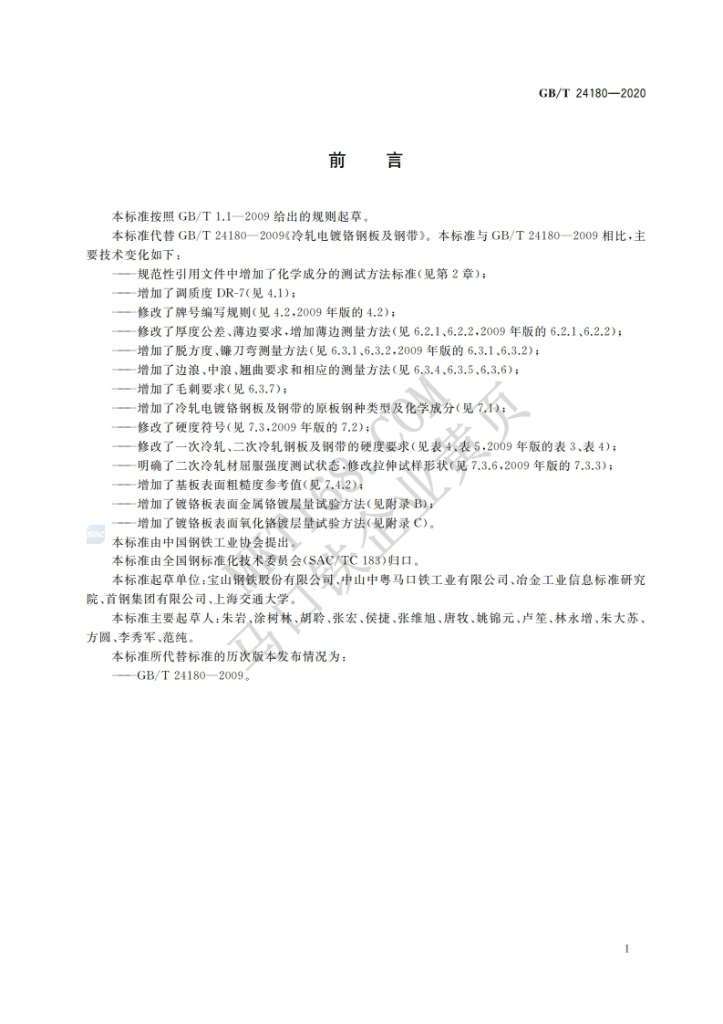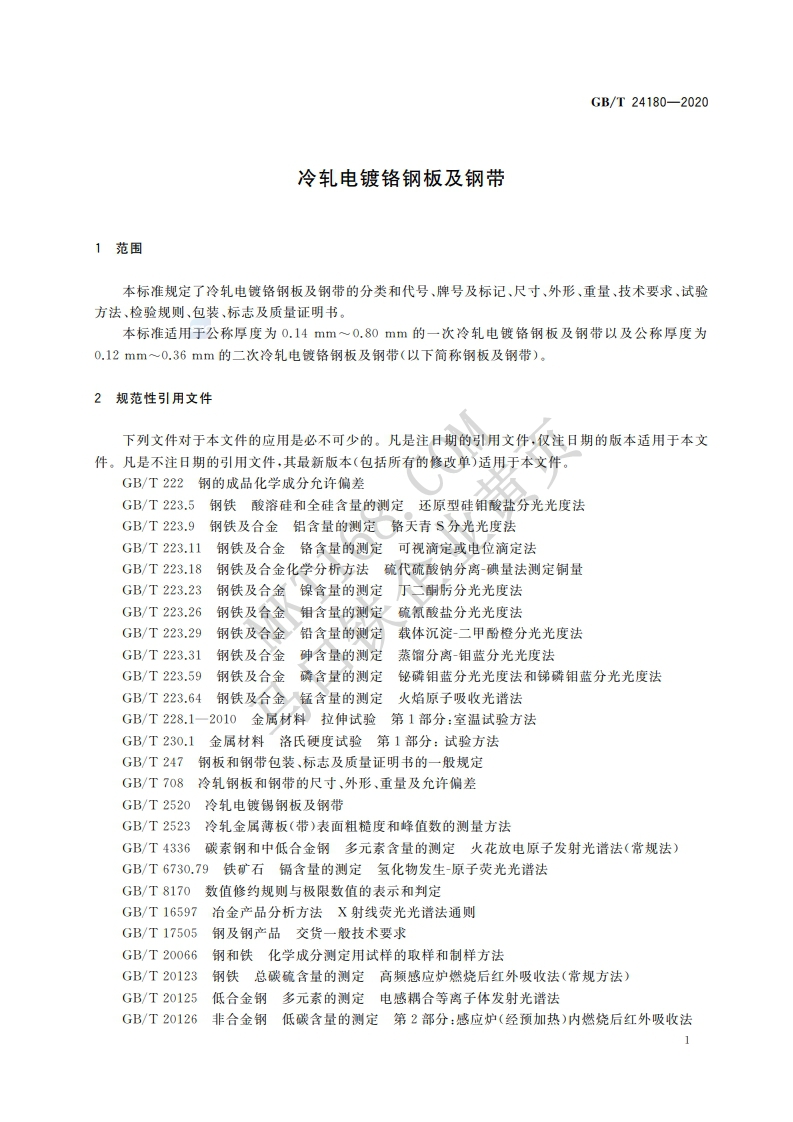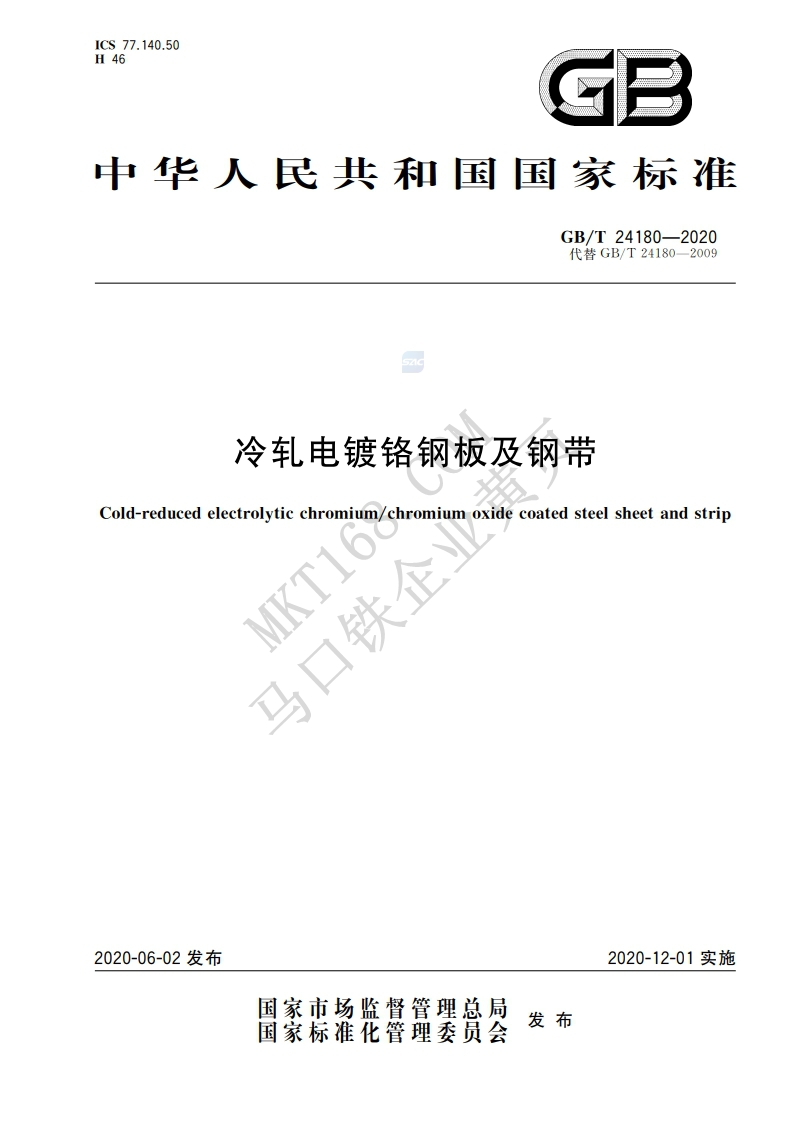 GB/T24180-2020,冷轧电镀铬钢板及钢带