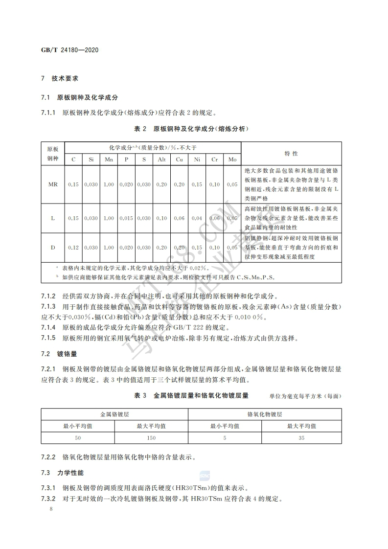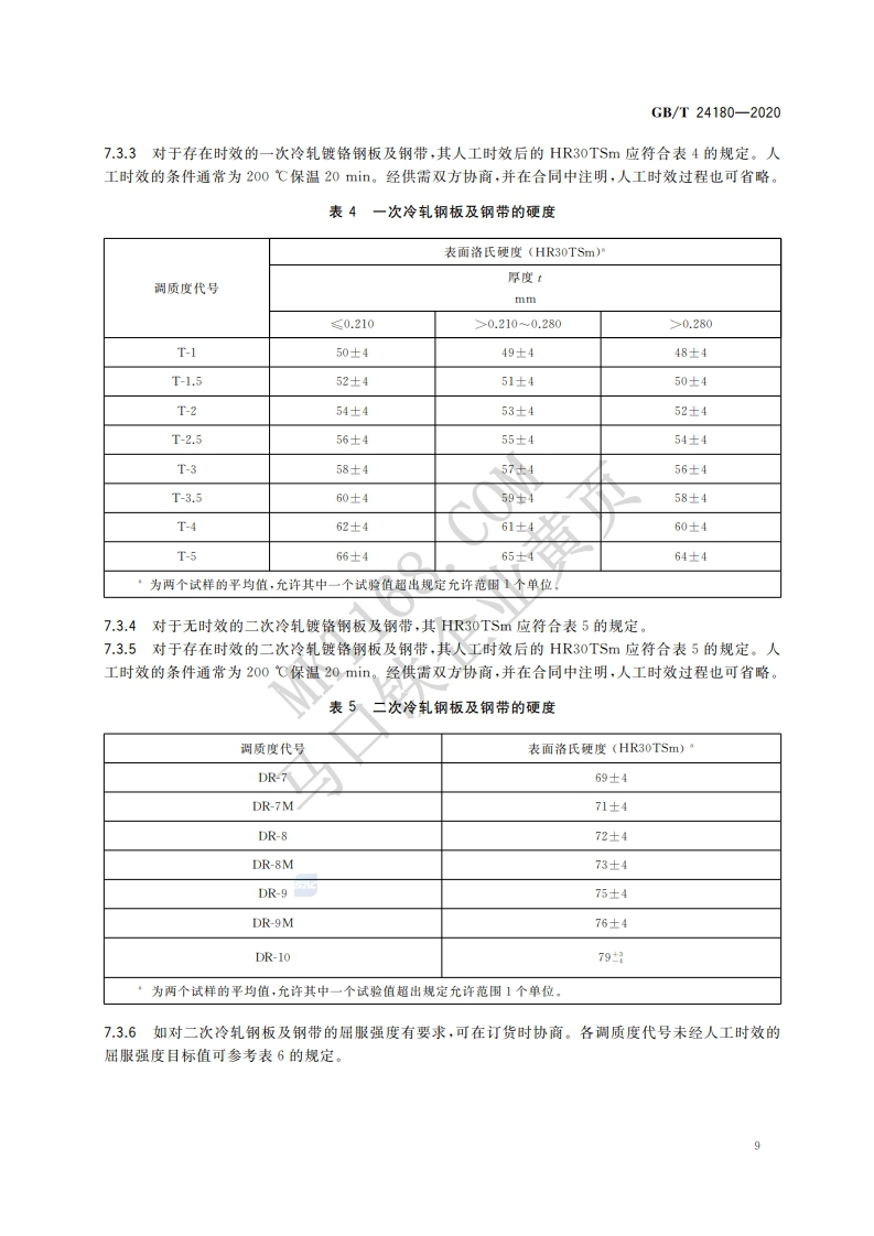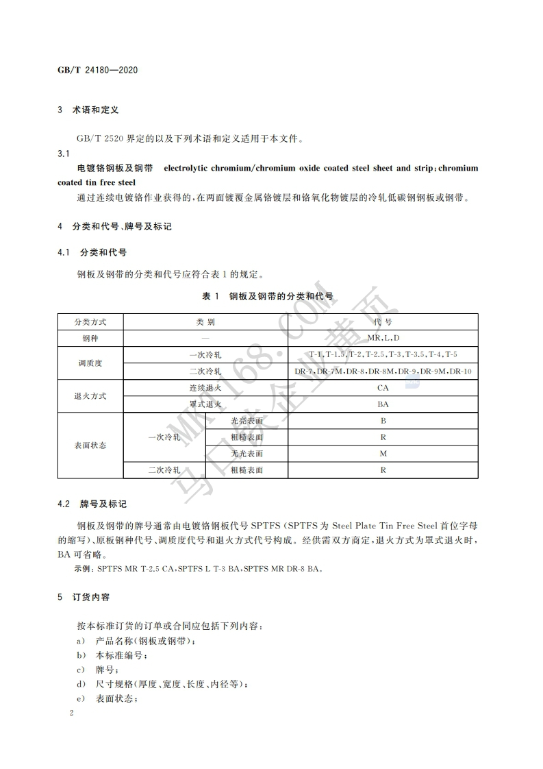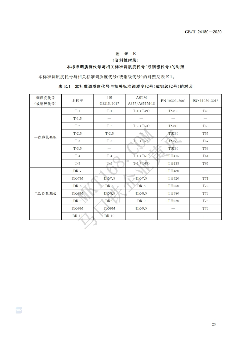 GB/T24180-2020,冷轧电镀铬钢板及钢带