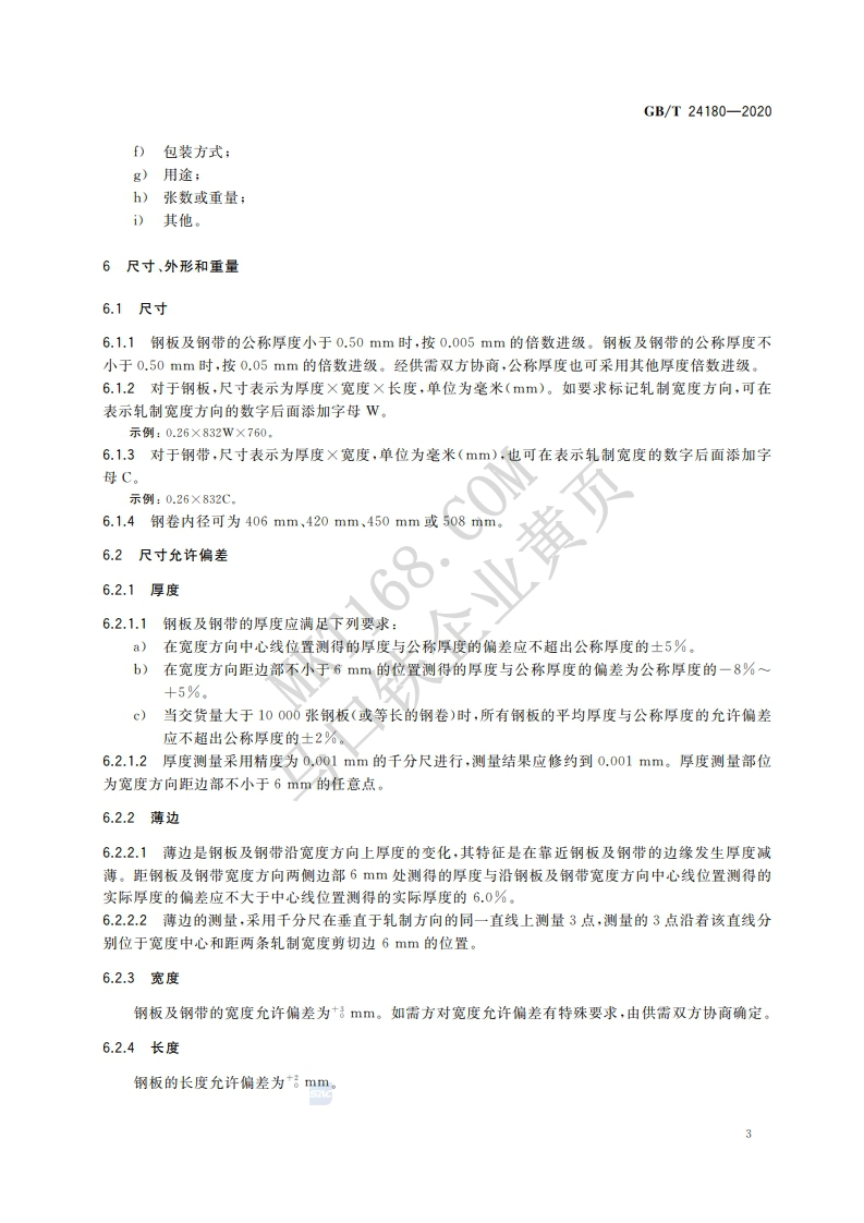 国标GB/T708-2019,冷轧钢板和钢带的尺寸、外形、重量及允许偏差